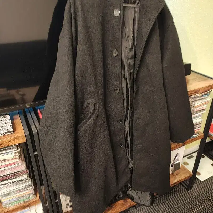 후드 부착 블랙 울 코트