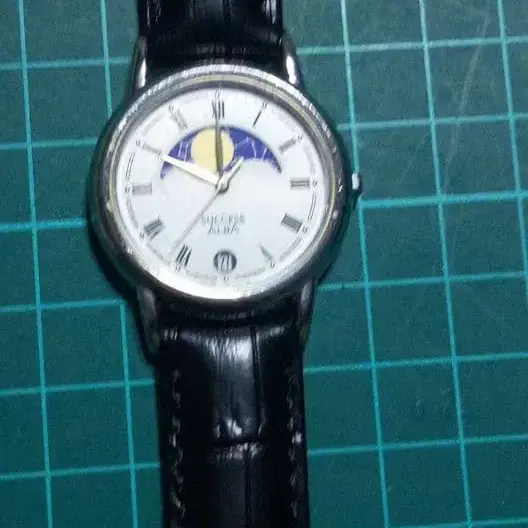 월령 표시 가죽 손목시계 ALBA SUCCESS 문페이즈 작동품