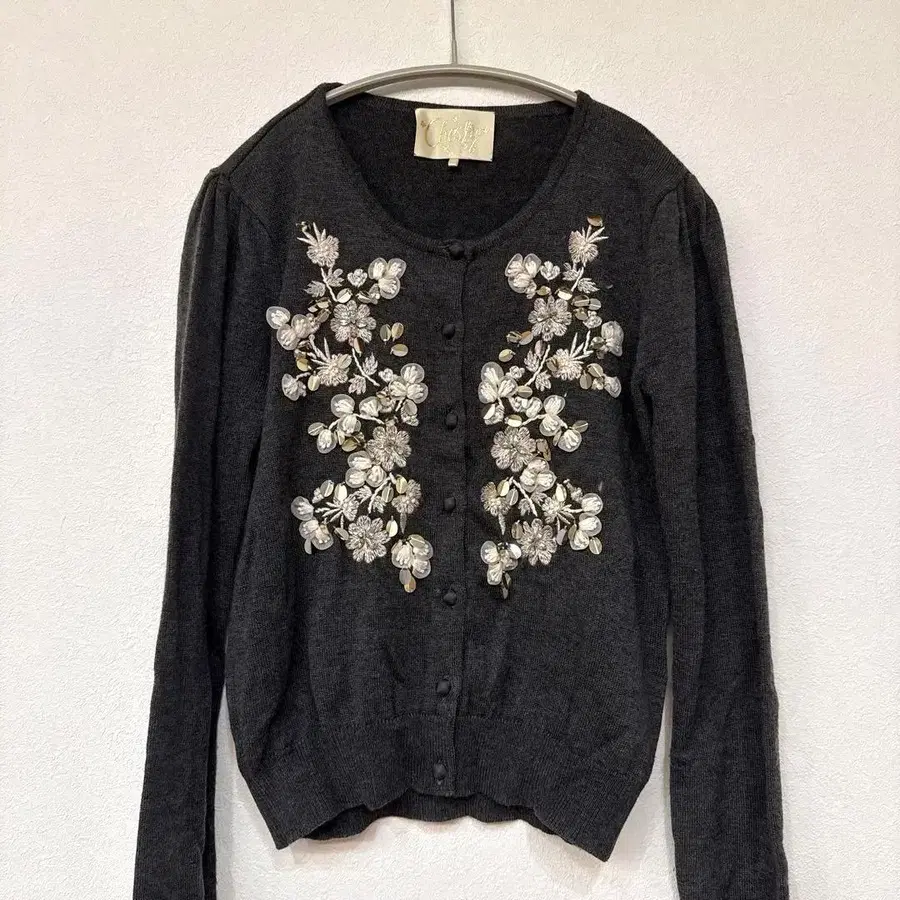 체스티 자수 포함 그레이 가디건