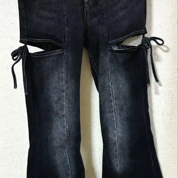 리젝시 컷 아웃 리본 데님 팬츠 블랙