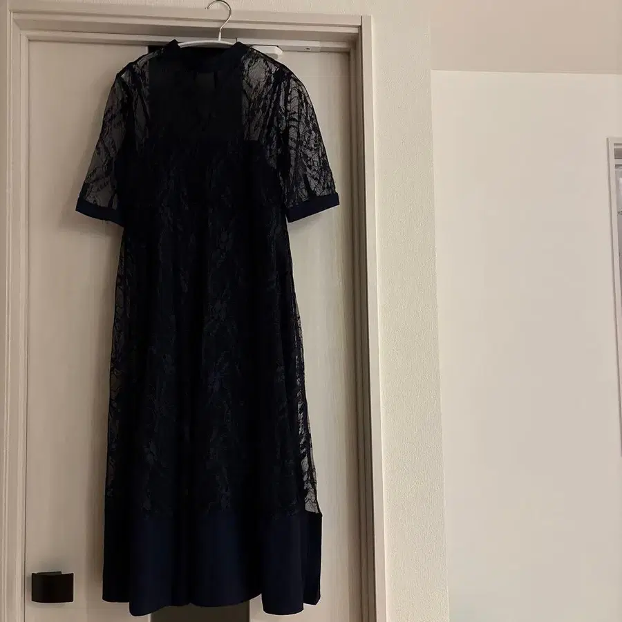 네이비 레이스 캐주얼 드레스 무릎 기장