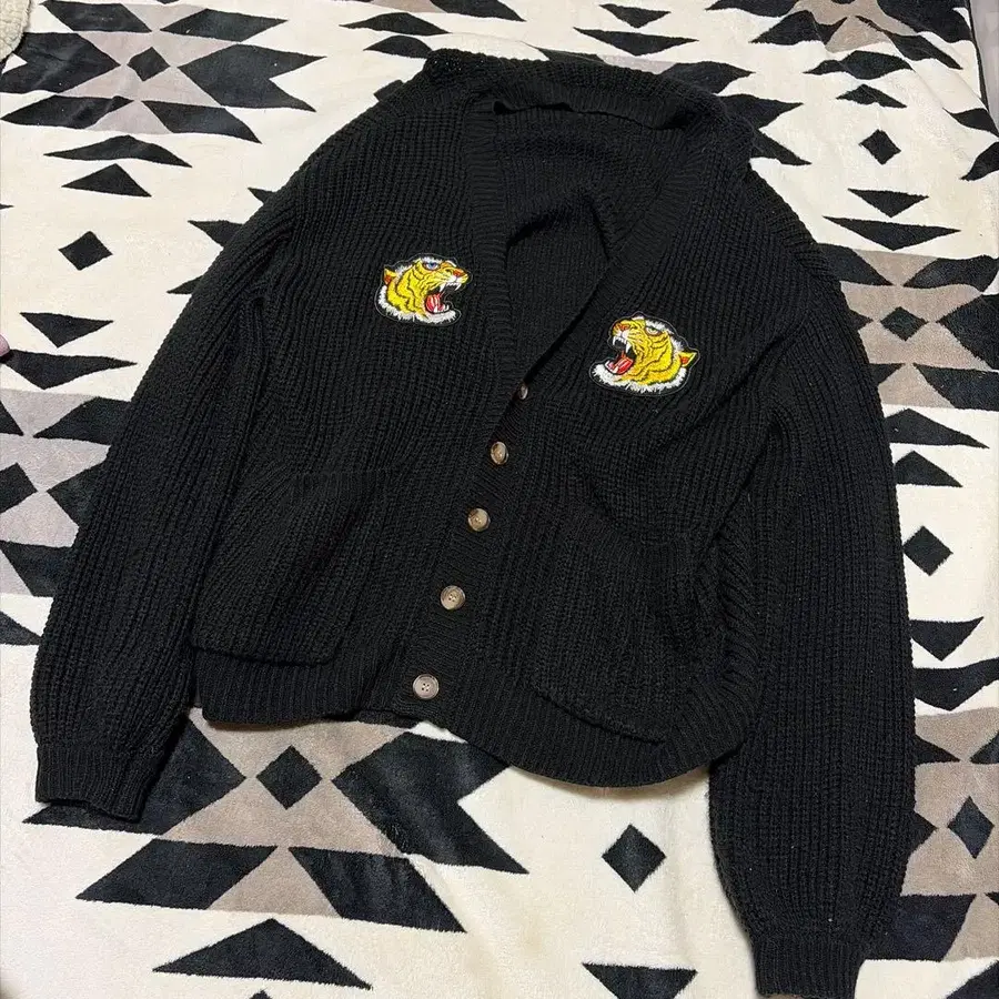 레어 A'GEM/9 케이블 니트 가디건 호랑이 자수 루즈핏 블랙
