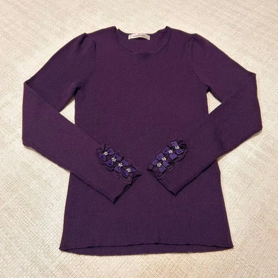 GALLERY VISCONTI 니트 리본 프릴 퍼플 보라색 L