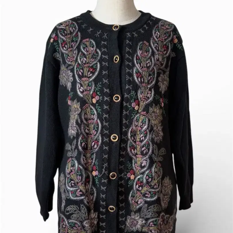 총 자수 가디건 3D 니트 꽃무늬 보타니컬