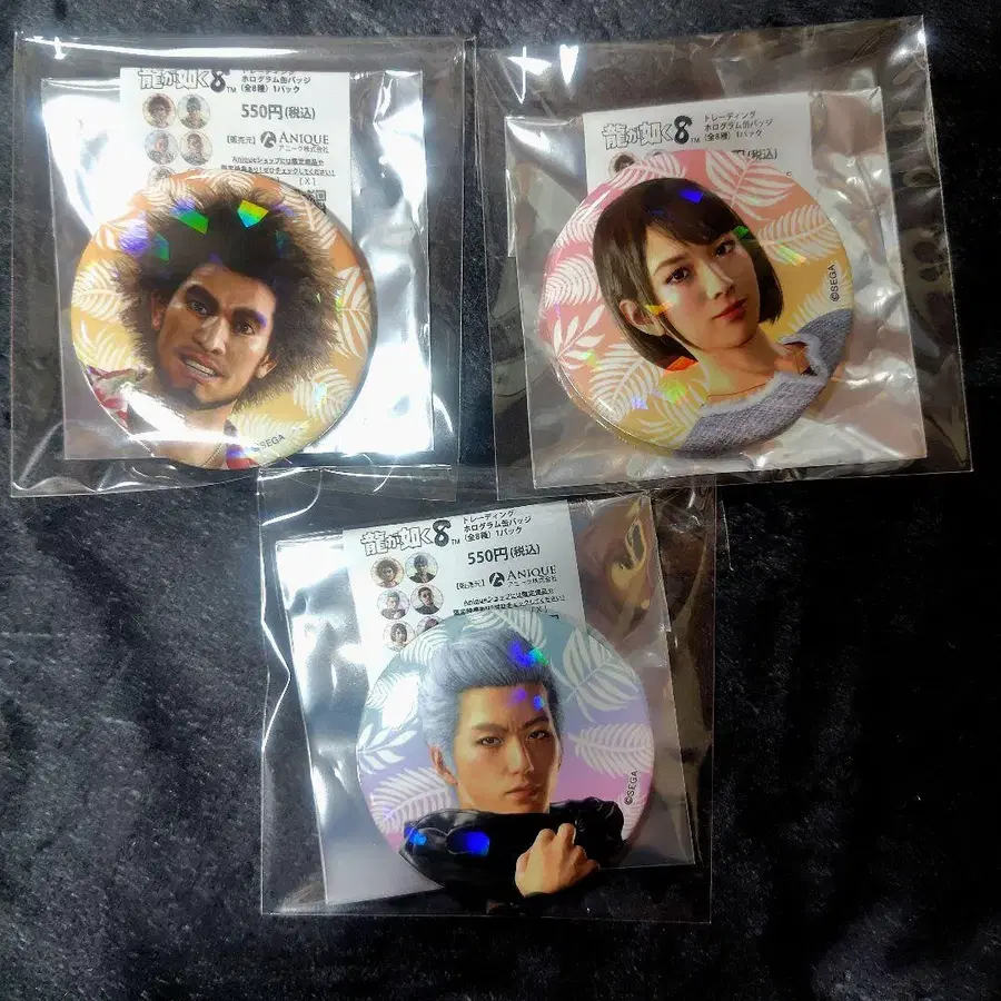 용과 같이 8 트레이딩 홀로그램 캔뱃지 3종 세트 미사용품