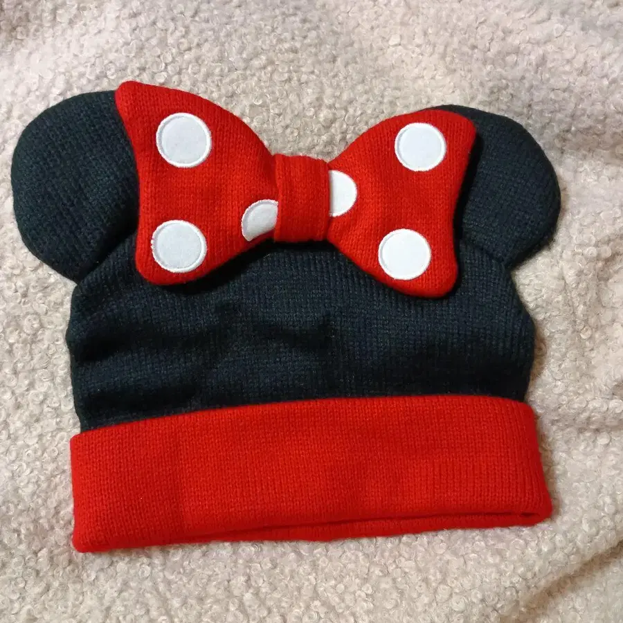 미니 마우스 귀도리 모자 블랙 레드