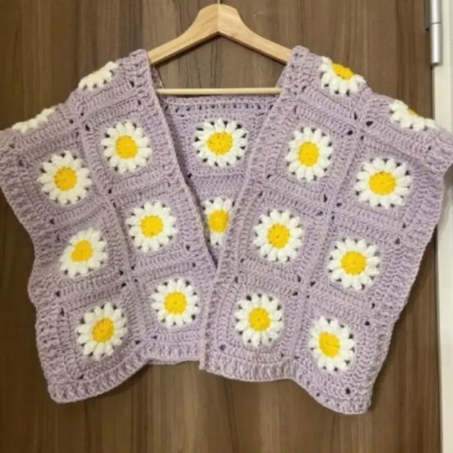 크로셰 니트 베스트 가디건 꽃무늬 크로셰 뜨개질 니트 퍼플 데이지