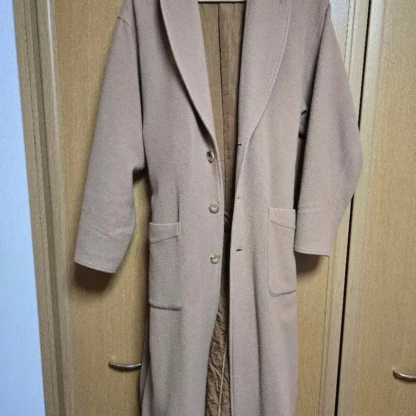 Iraquois 베이지 체스터 코트 허리 벨트 포함