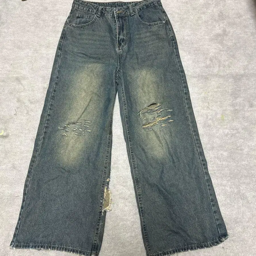 데미지 가공 와이드 레그 데님