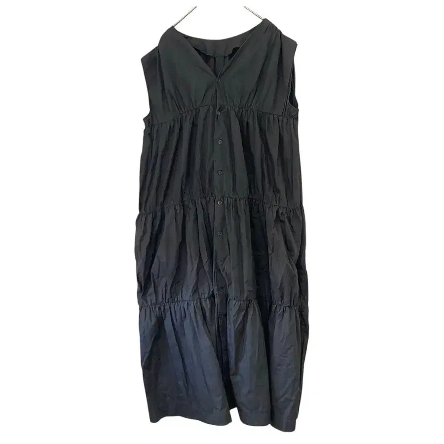 가벼운 면과 폴리에스테르 혼방 소재로, 통기성과 내구성이 뛰어난 롱 원피스입니다. 심플한 디자인이지만, 앞 버튼 사양으로 겉옷으로도 활용 가능합니다. 허리 부분에 개더가 있어 입체적인 실루엣을 연출합니다. 왼쪽 겨드랑이에 약간의 색빠짐이 보이지만, 전체적으로 양호한 상태입니다.