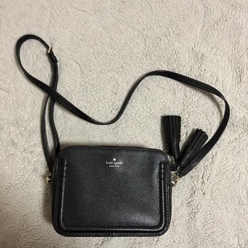 케이트 스페이드 블랙 가죽 숄더백 태슬 포함