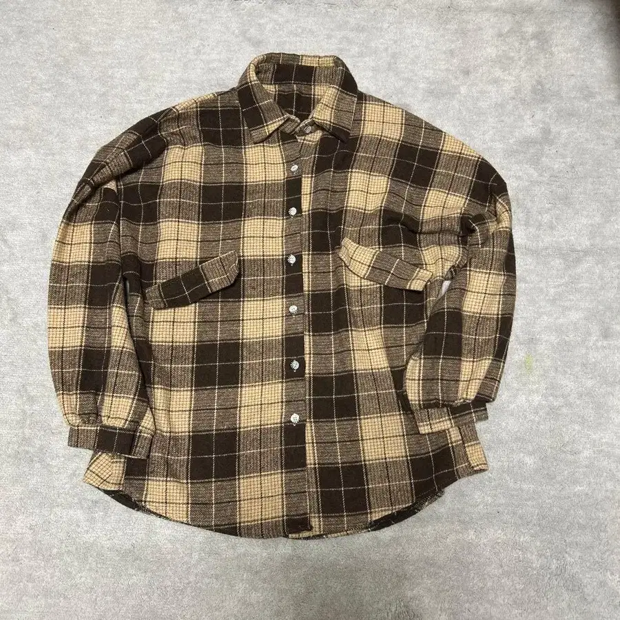 브라운 베이지 체크 무늬 플란넬 셔츠