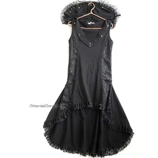 푹 눌러 쓸 수 있는 큰 후드, 밑단 절개의 2중 레이스,