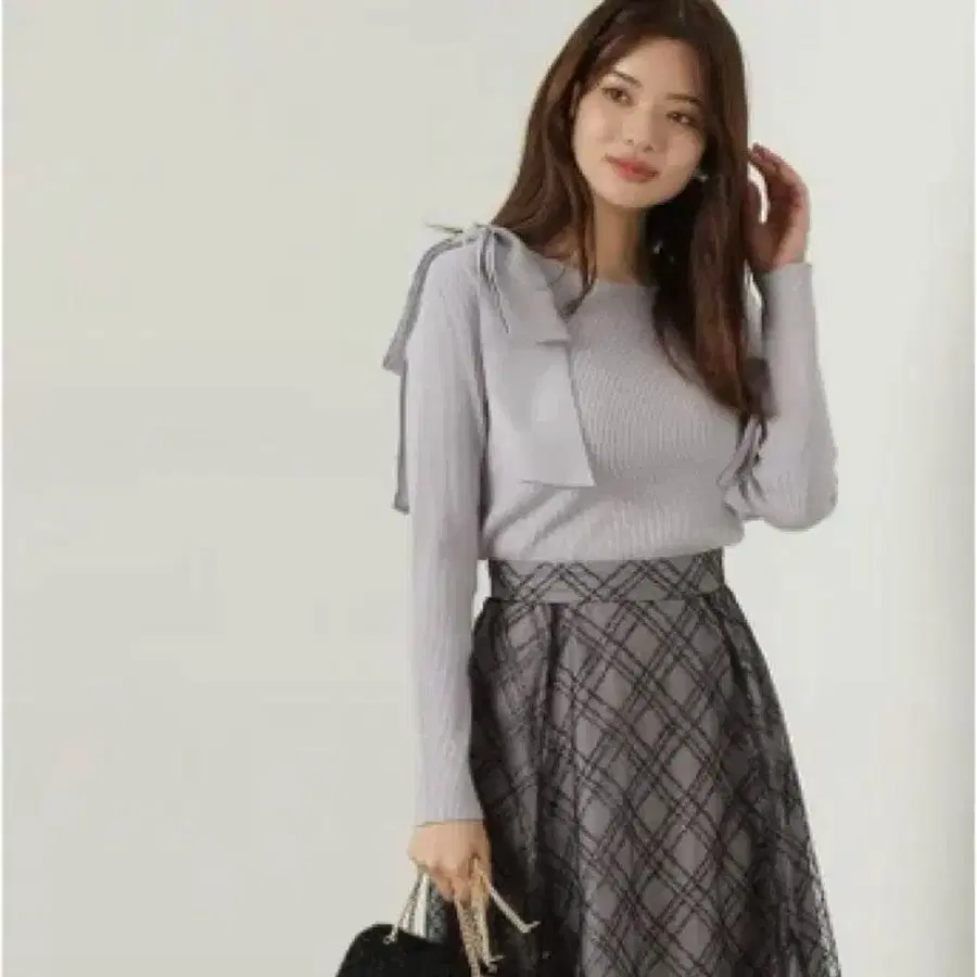 [ 미사용품 ] 프로포션 바디 드레싱 숄더 리본 리브 니트 블루
