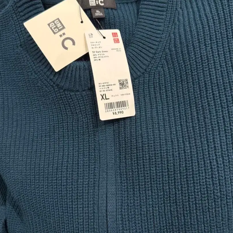 새상품 유니클로C 크루넥 풀 집업 가디건 XL 다크 그린