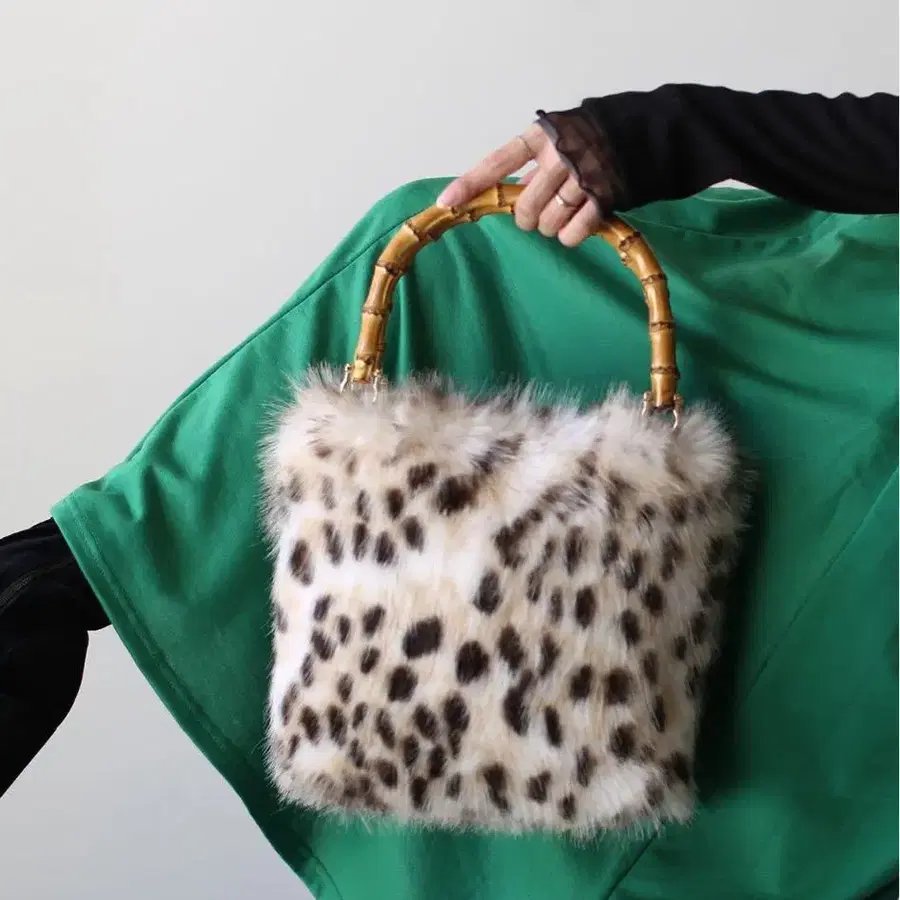 산쿄카이 레오파드 무늬 퍼 핸드백