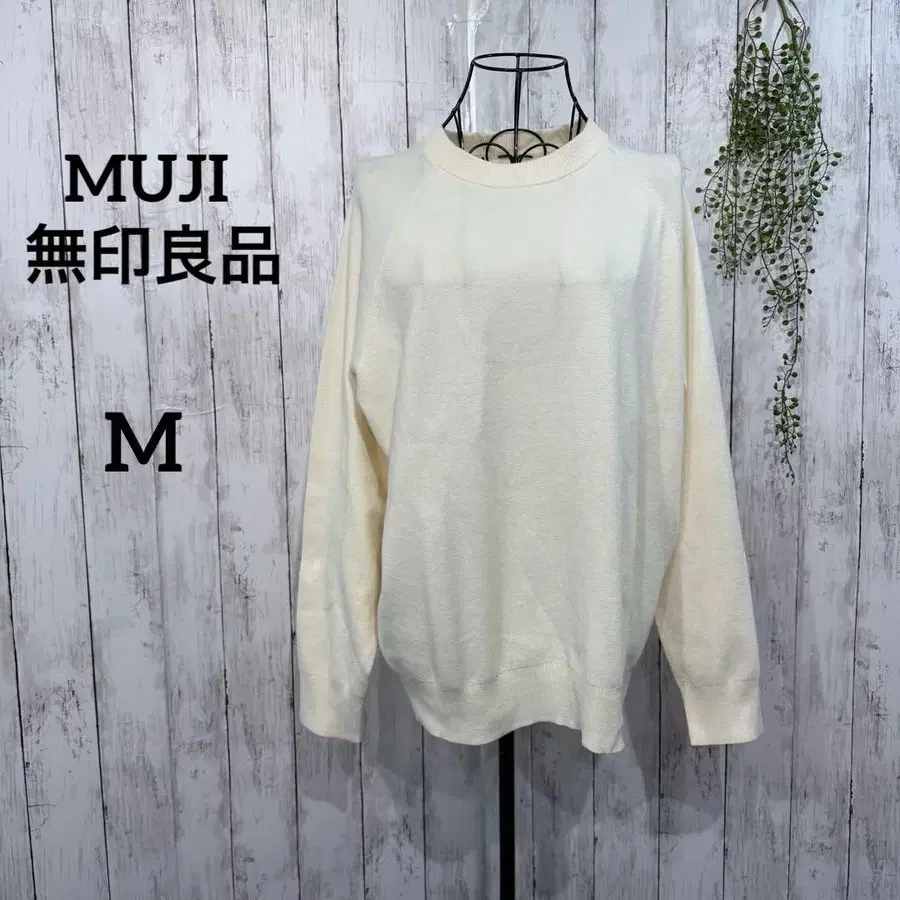 무지루시 니트 스웨터 M 크루넥 심플 워셔블 래글런 화이트