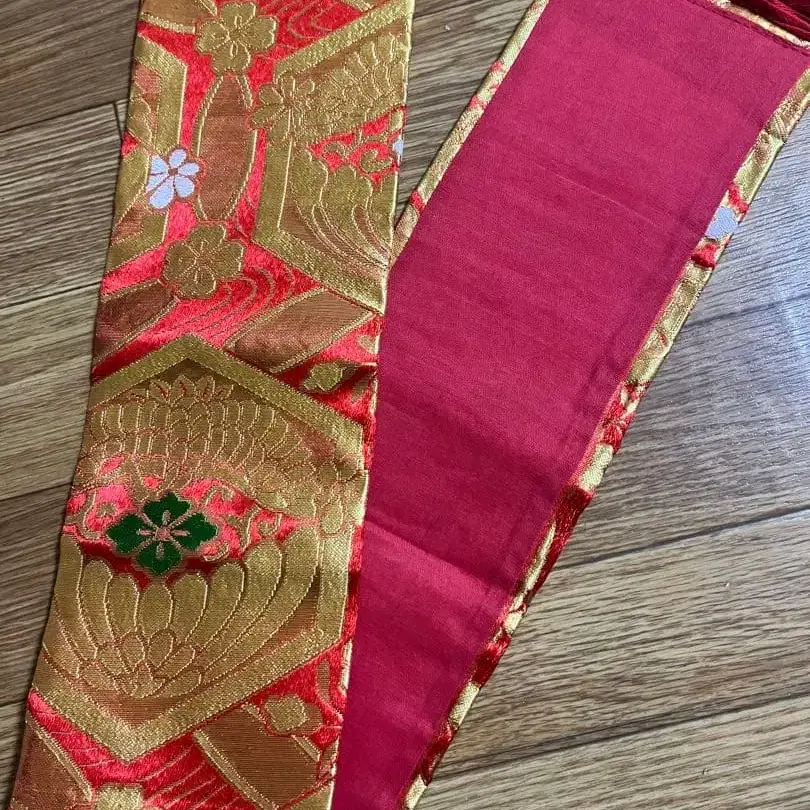 빨간색과 금색 무늬 반폭 오비 약 80cm