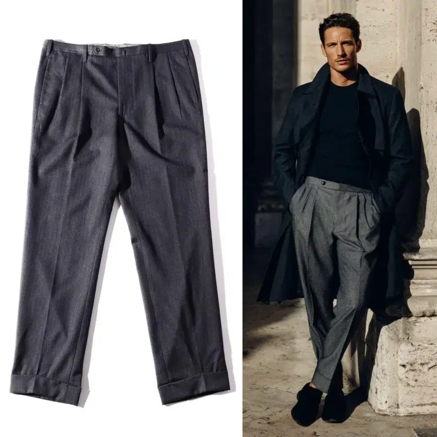 C1390 실력파 사르토리아 ◎ Sartoria Ciccio 사르토리아 치치오 새상품급 트라우저 팬츠 슬랙스 울 부드러운 더블 마감 가을/겨울 미디엄 그레이 헤링본 XL 상당!!