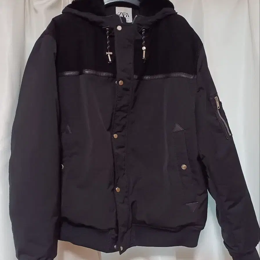 ZARA 블랙 봄버 자켓 후드 부착 다운