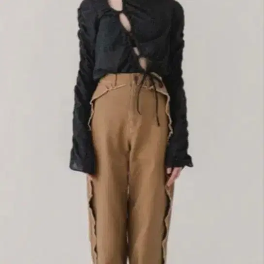 [ 새상품 ] RUFFLE DETAIL DENIM PANTS 브라운