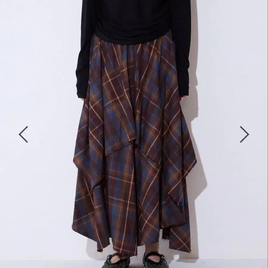 언밸런스 밑단 레이어드 체크 스커트 브라운 블루
