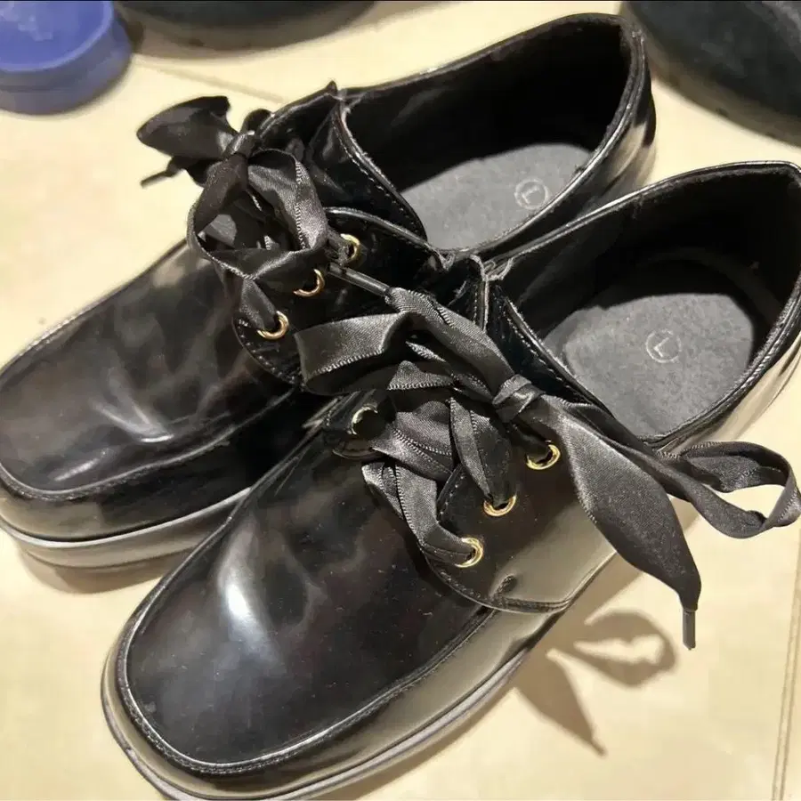 리본 포함 블랙 로퍼 통굽 신발