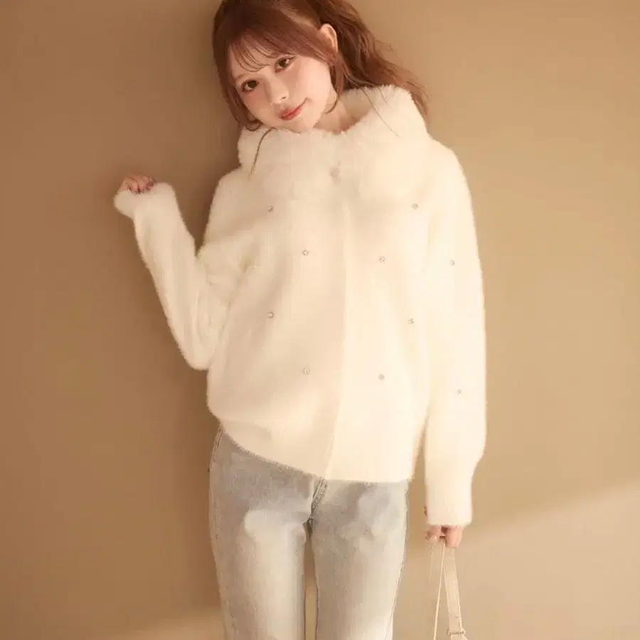 비쥬 달린 퍼 자켓 아이보리