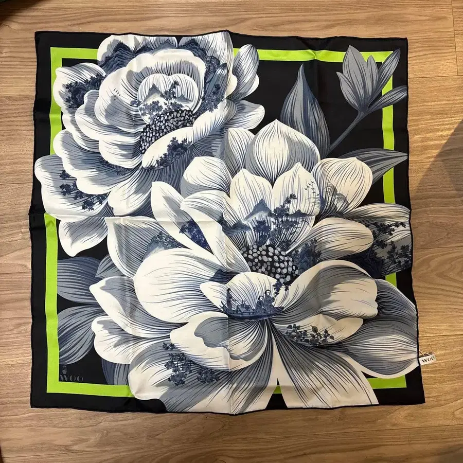 WOO CZ 야막 블랙 컬러 꽃무늬 스카프