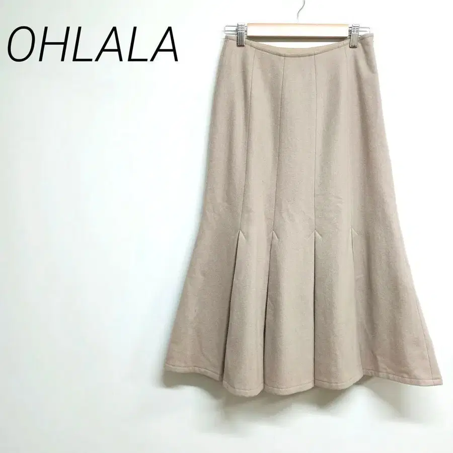 OHLALA 베이지 플레어 스커트 부드러운 원단 안감 밑단 빅 플리츠
