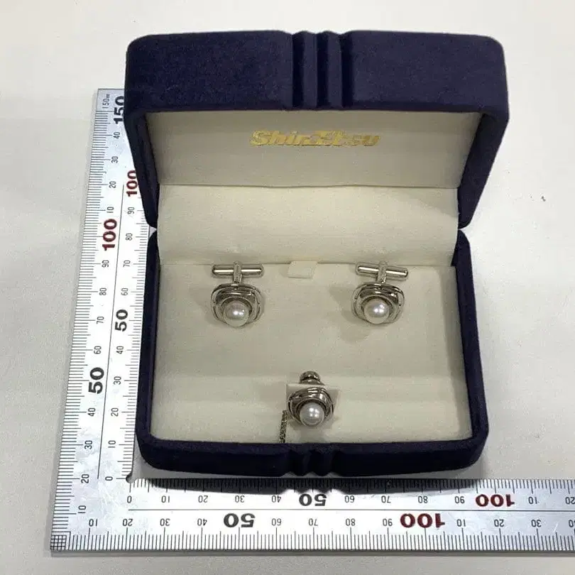 펄 커프스 링크 커프스 단추 핀 배지 케이스 포함