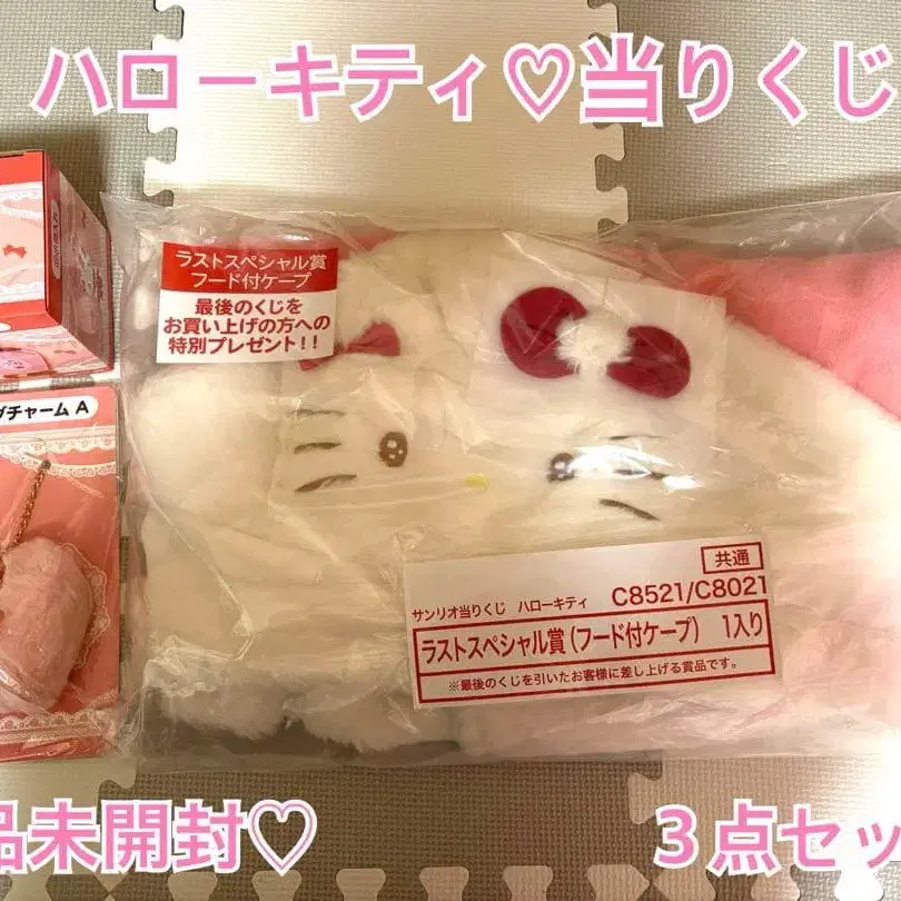 [ 당일 발송 ] 새상품 헬로키티 복권 후드 부착 케이프 외 3세트