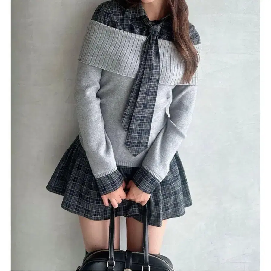 RESEXXY 셔츠 레이어드 니트탑 플레어 스커트