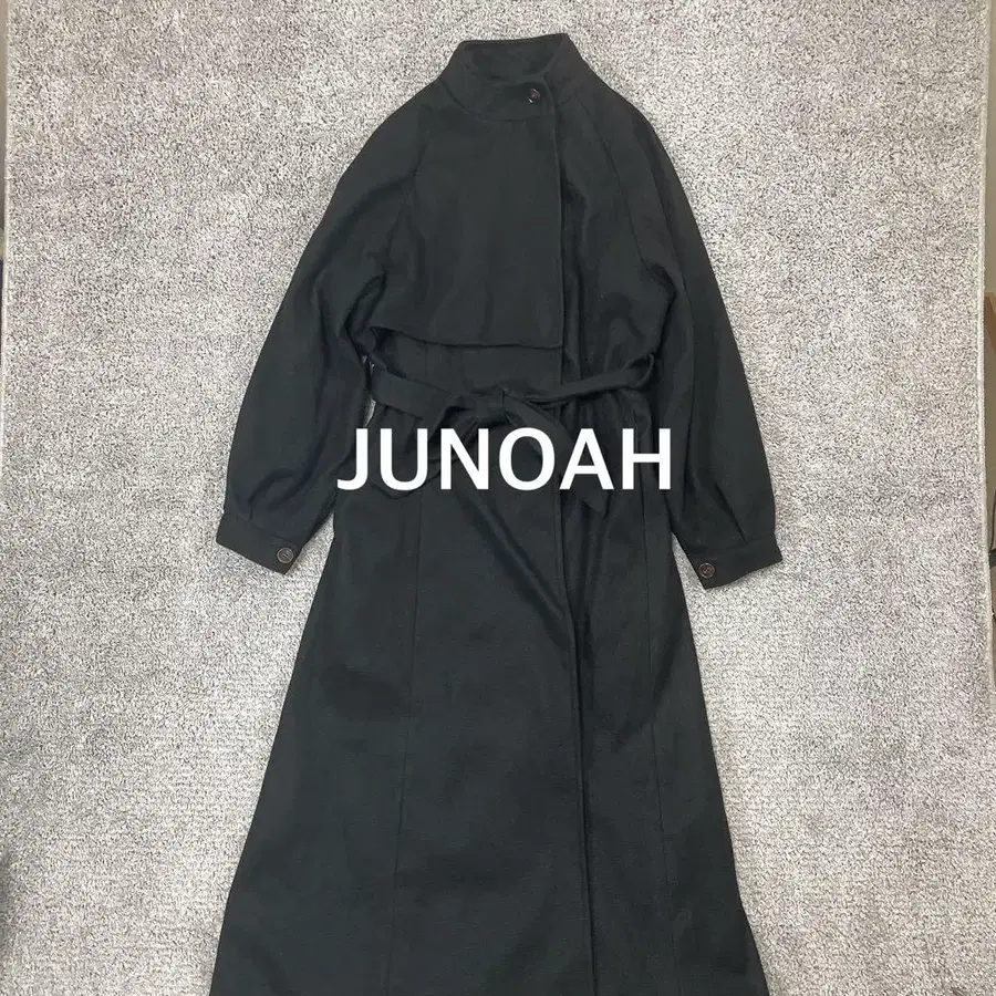 [ JUNOAH ] 스탠드 카라 요크 롱 코트 블랙