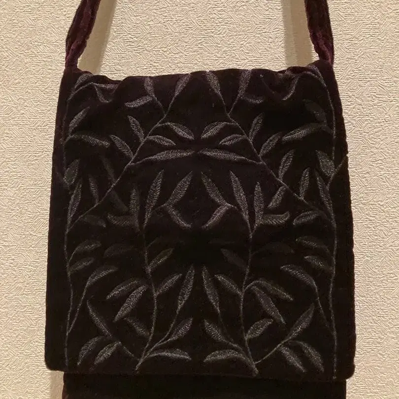 새상품급 블랙 벨로아 리프 무늬 자수 숄더백 시노와즈리