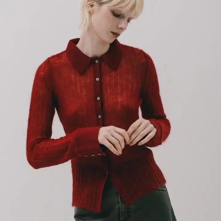 • RIVE DROITE V넥 캐시미어 혼방 긴팔 니트 레드
