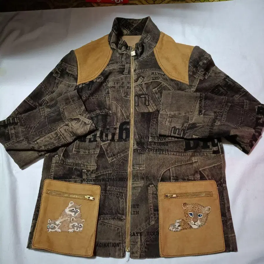 이타리야 레오파드 동물 패턴 자켓 큐빅 사이즈 9호 새상품급