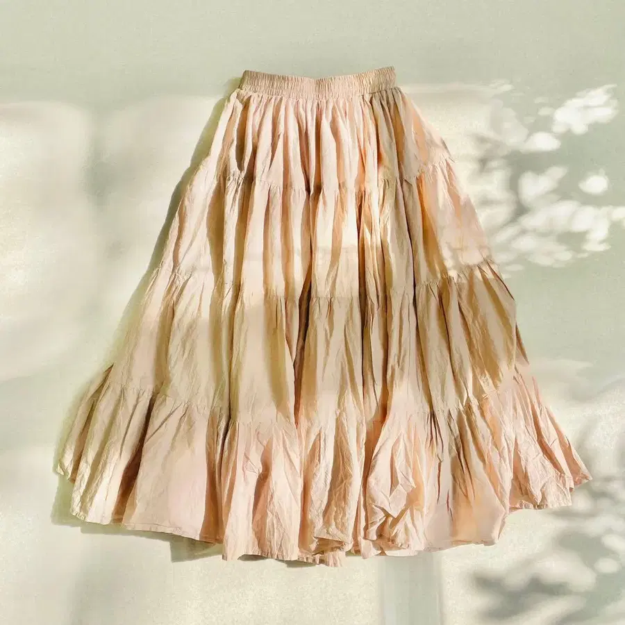 OHLALA 베이지 플레어 스커트 부드러운 원단 안감 밑단 빅 플리츠