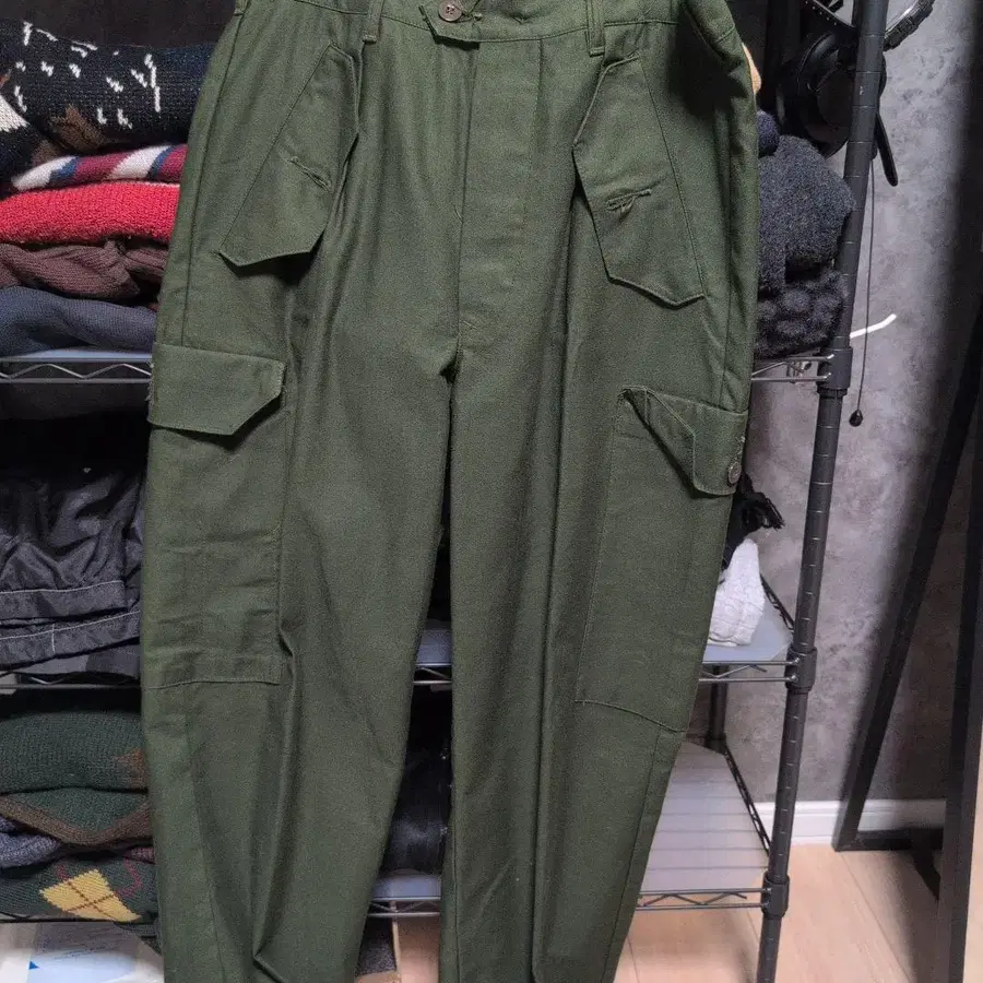 카고 팬츠 올리브 그린 5 버튼 4 포켓