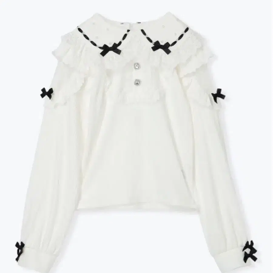 노에미 노에미 아가씨 리본 펄 프릴 요크 티셔츠