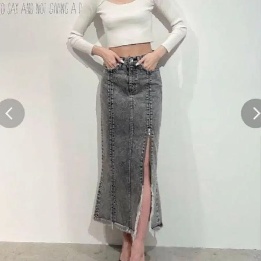 최종 가격 인하 GYDA H/W ZIP 슬릿 케미컬 데님 스커트