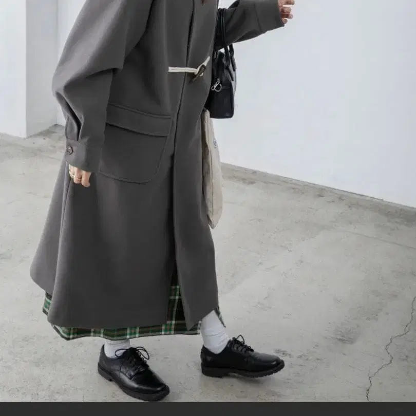 멜톤 볼륨 슬리브 오버 롱 더플 코트