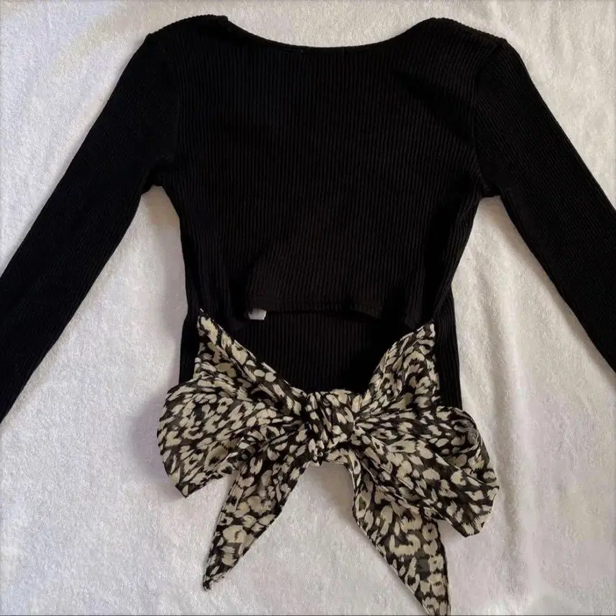 GYDA 레오파드 백 리본 테레 콜론T 블랙