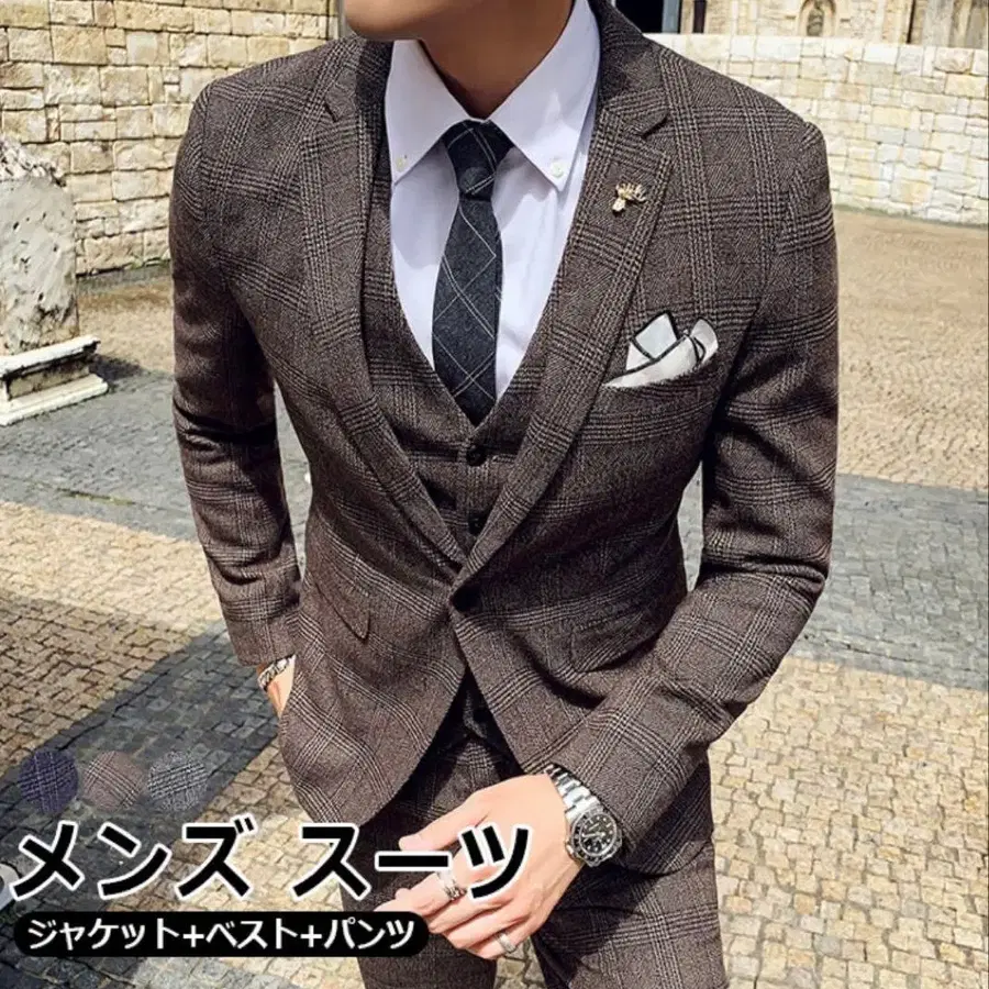 취업 정장 스타일리시 수트 더블 수트 체크 무늬 남성용 포멀 슈트 3세트 비즈니스 남성용 수트 쓰리피스 수트 남성복 출퇴근 졸업식 파티 관혼상제 결혼식 올 시즌 무료배송 워셔블 쓰리피스 수트 3피스 수트