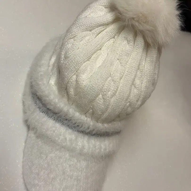 화이트 케이블 니트 비니 캡