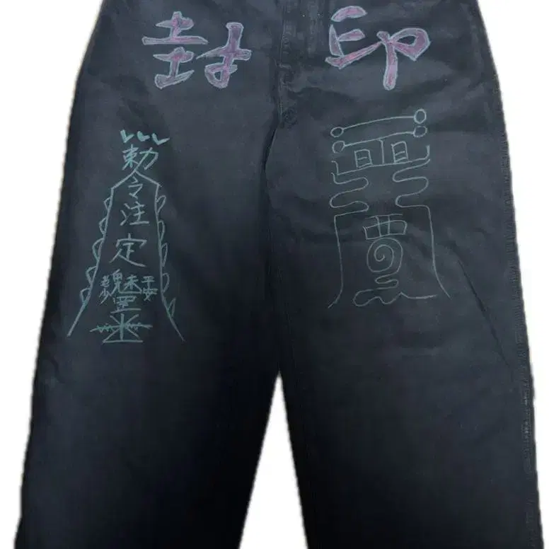 90s 00s 핸드 페인트 팬츠 와이드 팬츠 데님 y2k