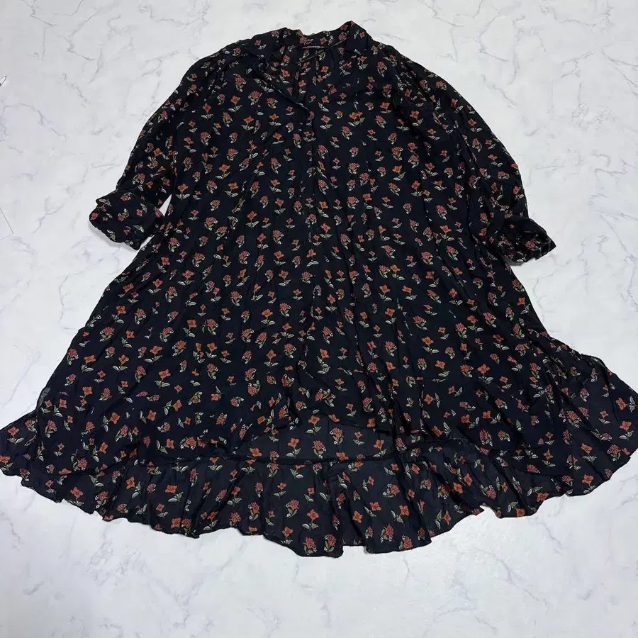 자라 롱 원피스 블랙 [ M ] 꽃무늬 비침 있음 얇은 소재 A라인