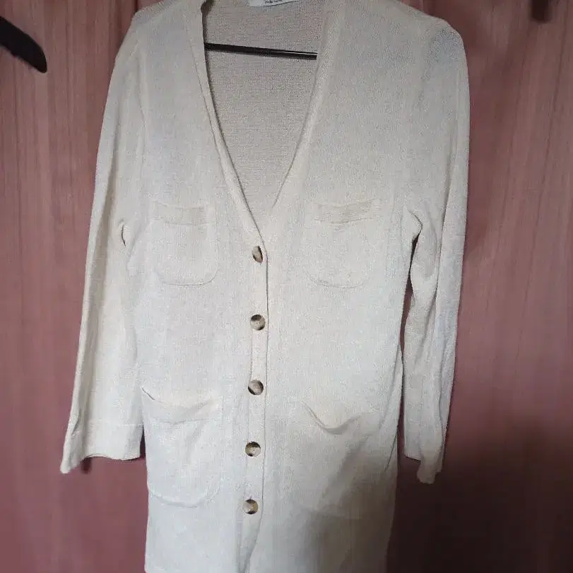 Mixing blue 린넨레이온 니트 가디건 베이지