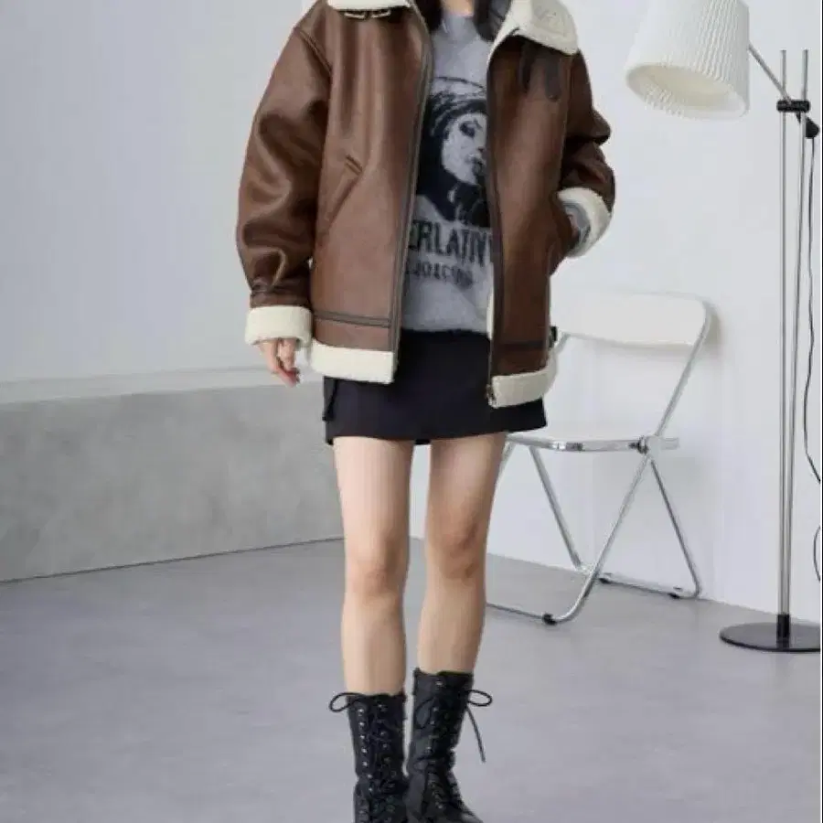 자동 번역되었어요. 원문보기무스탕 느낌의 브라운 자켓, 캐주얼하고 따뜻한 디자인.