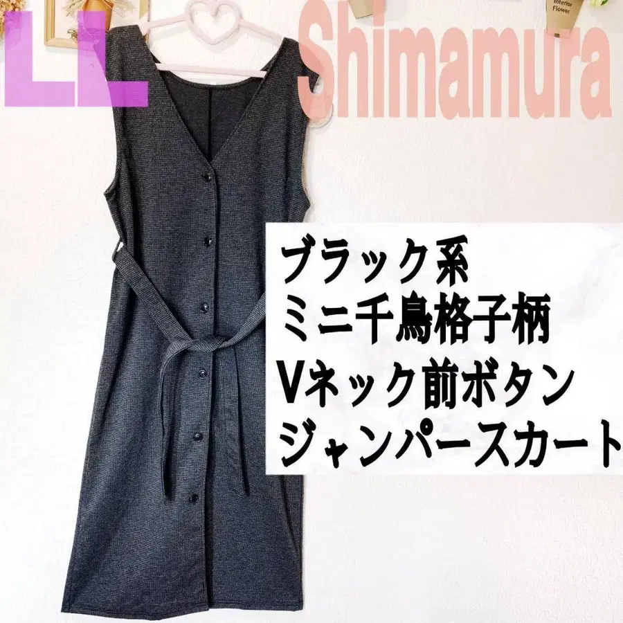 새상품 시마무라 블랙 계열 하운드투스 허리 리본 포함 오버롤 스커트